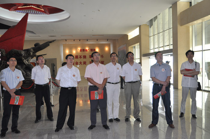 中国红十字基金会书记王志(左四)于2011年7月27日到渤海园参观,张兆宏(左三)副市长、市民政局副局长吕德祥(左二)等陪同。